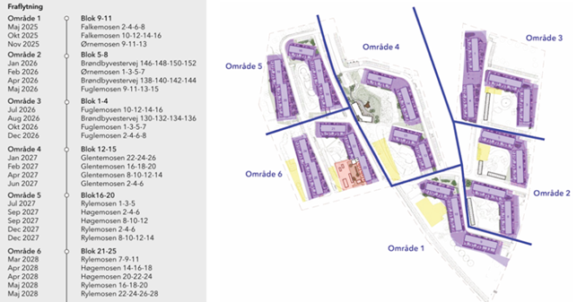 Du vil op til din fraflytning blive inviteret til etapemøde hvor du vil få information samt mulighed for at stille spørgsmål til repræsentanter fra flyttefirma, genhusning, entreprenør, ejendomskontor, beboerkoordinator og afdelingsbestyrelse.